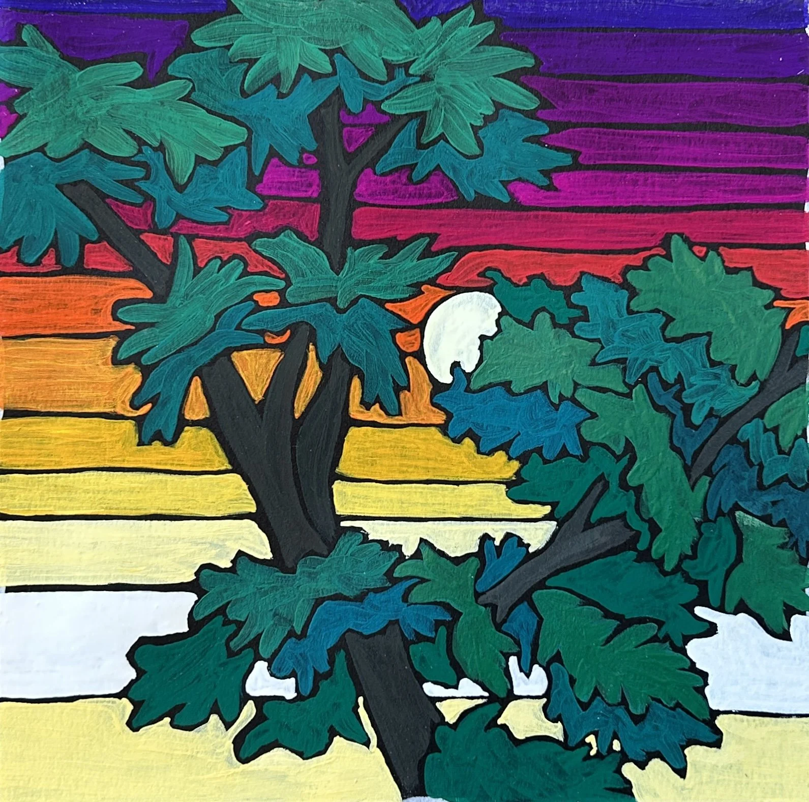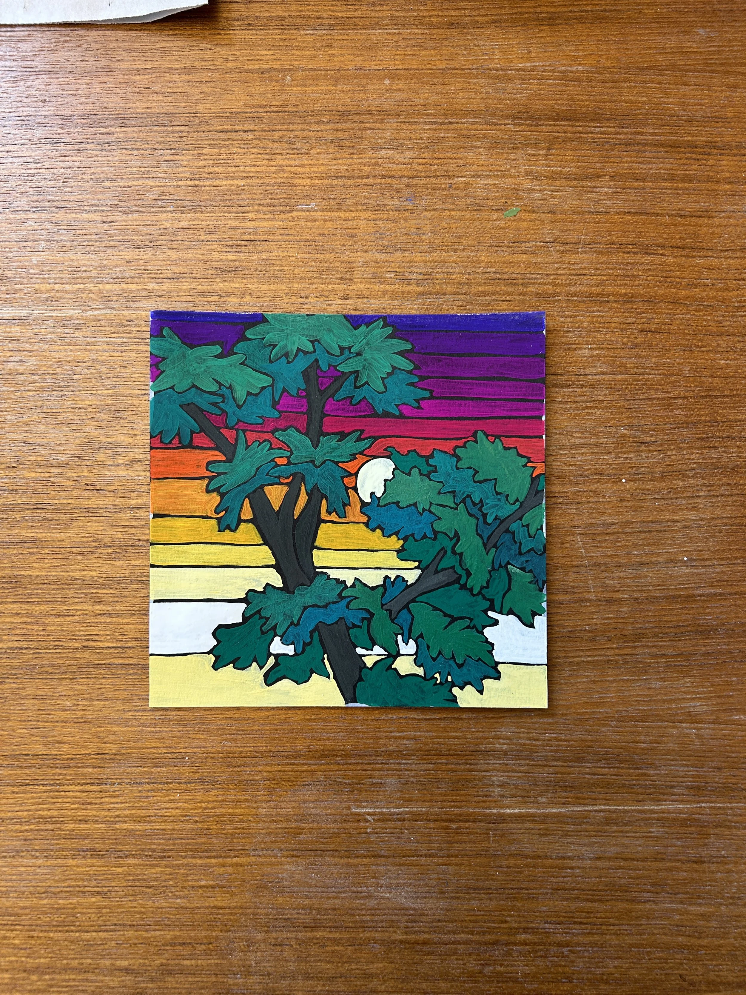 April May Art › Sunset Through the Trees - 5x5 Sunset Through the Trees - 5x5 $50.00 5×5 original mosaic gouache painting on black paper 5×5 original mosaic gouache painting on black paper Purchase Added!